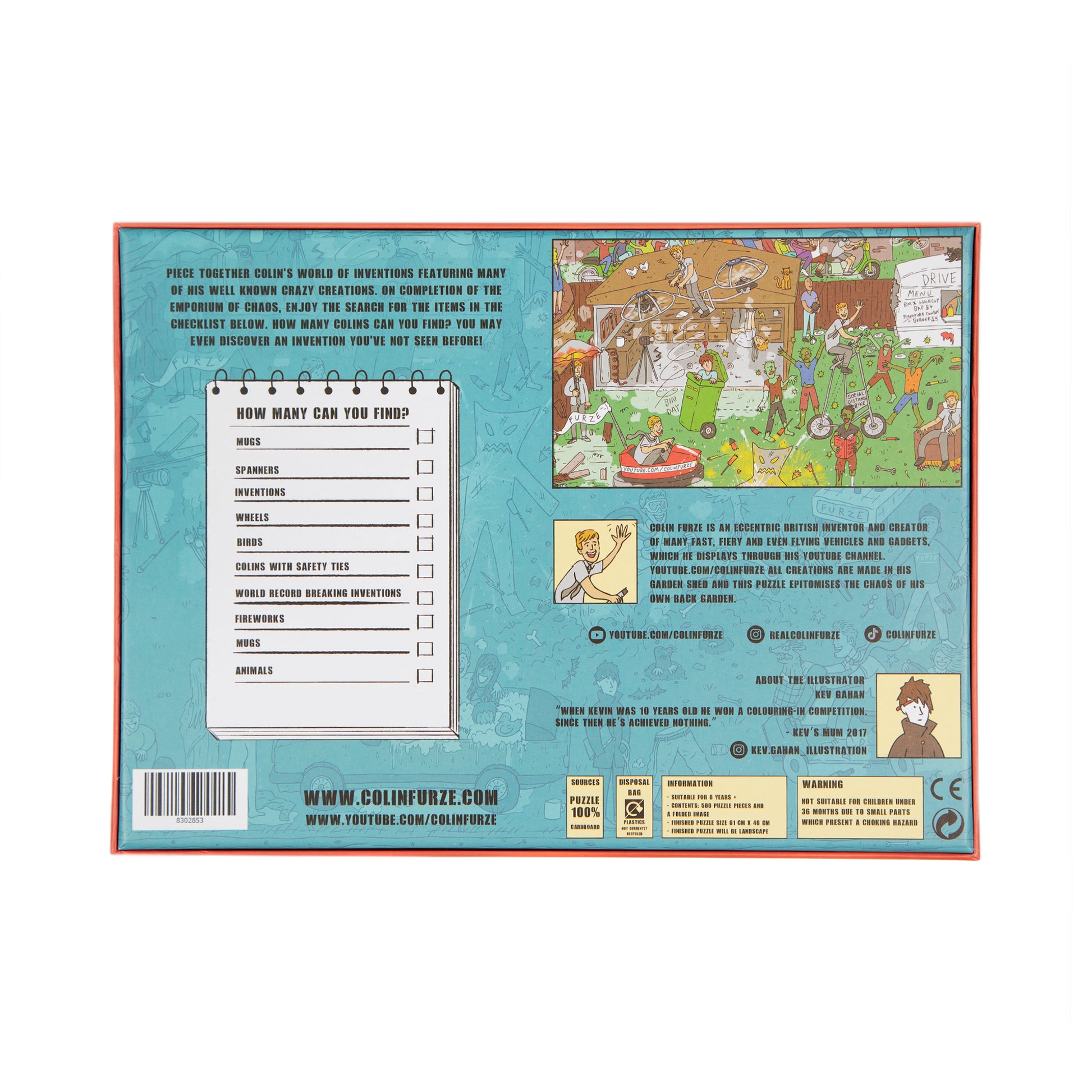 Here's your opportunity to piece together Colin's World of Inventions featuring many of his well known crazy creations, in a humorous, chaotic scene. On completion, enjoy the search for items in the checklist on the back of the box.
